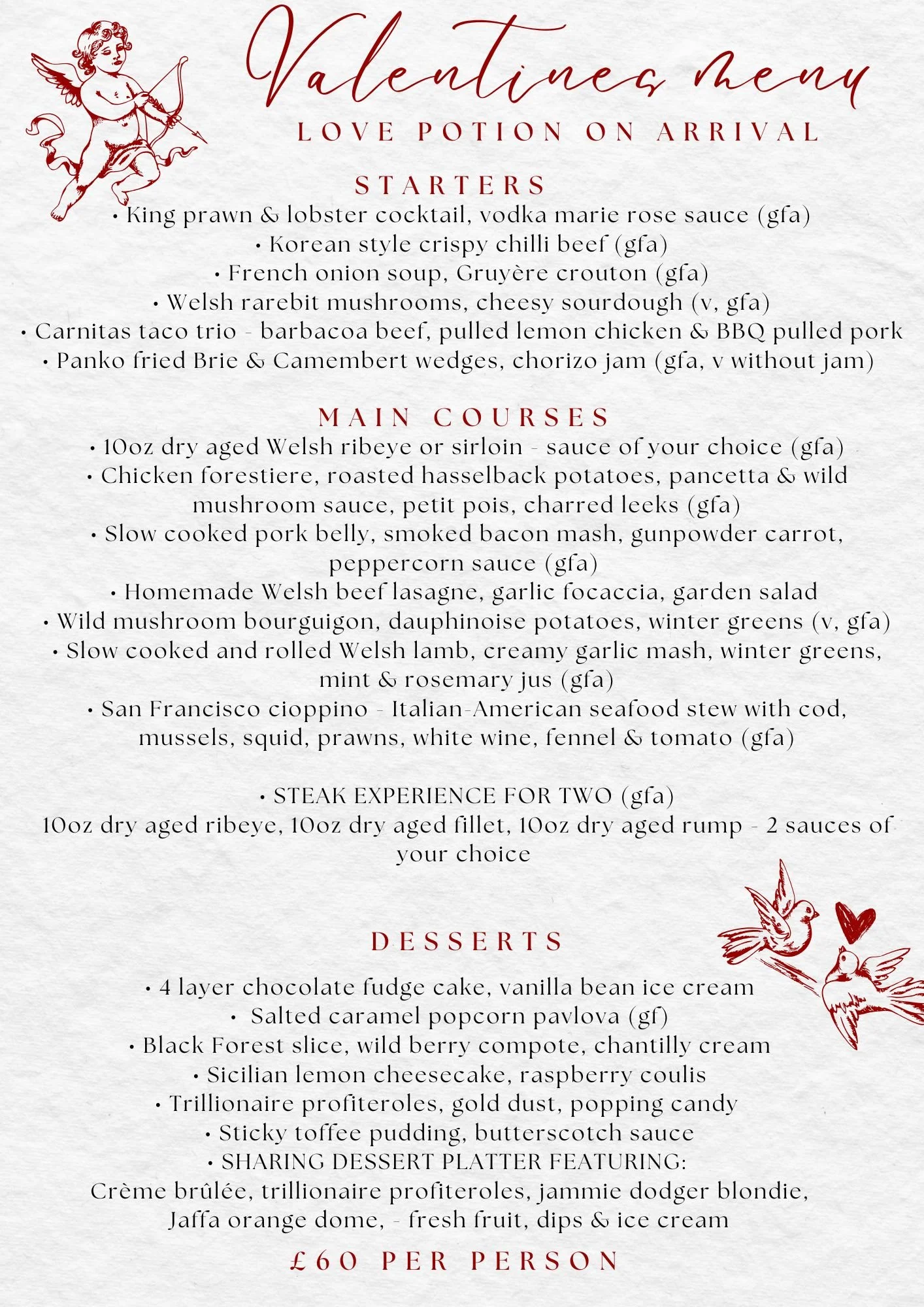 Available Saturday 14th & Sunday 15th February (evenings only) - this will be the only menu available.